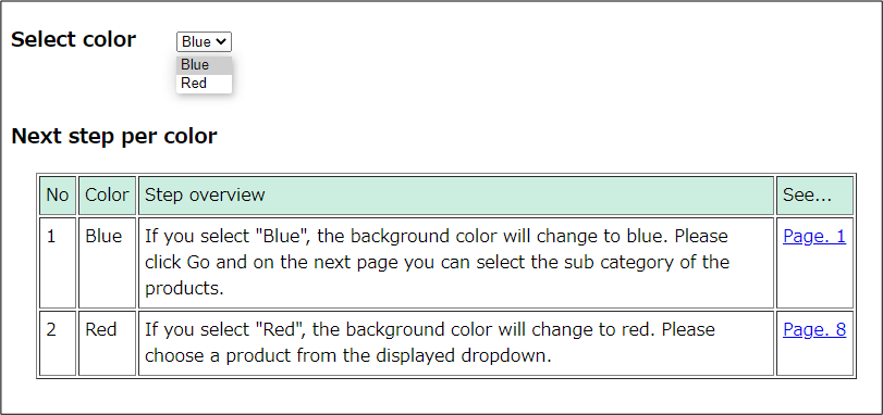 Webアプリケーションの英語UIを日本語に翻訳する(英日翻訳)ケースを例に解説します。ここでは、画面上部のプルダウンリストで値を選択するとUIが動的に変わるような挙動をイメージしています。