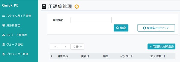 tbxファイルをお持ちでない場合でも大丈夫。Quick PEの用語集管理メニューでは、対訳データを1件ずつ登録してゼロから用語集を作成できます。ただし、この場合はすべて手動での入力となるため、件数が増えるほど作成の手間も増えます。