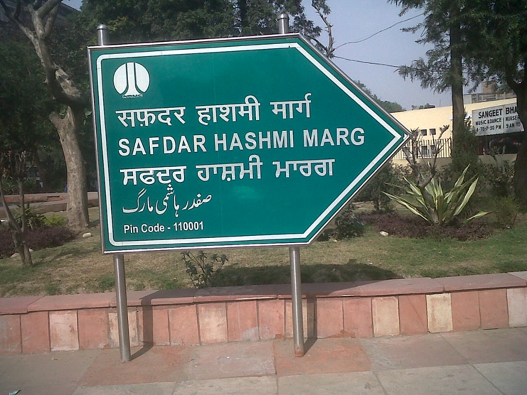 上記の看板はデリーにある道路標識の看板ですが、上からヒンディー語、英語、マラーティー語(ムンバイのあるマハラシュトラ州の公用語)、ウルドゥー語です。ヒンディー語とマラーティー語は同じ文字(デーヴァナーガリー)で表記されているので、かなり似ていますが、ヒンディー語と一番下のウルドゥー語は似ても似つかぬ文字で表記されています。