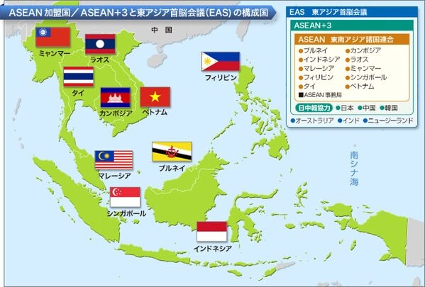 日本語だとちょっとややこしいのですが、実はASEANは東南アジアの総称ではなく、この「Asian Nations」は東ティモールを除いた10各国を指しています。