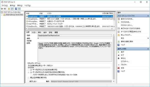 タスク スケジューラの画面です。ここでスケジュールを作成/管理できます。