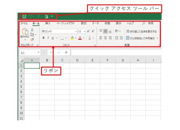 みなさんExcelやWordを開くと左上にファイル、ホーム、挿入・・・といったタブや、その下に貼り付け、フォントの設定のボタンなどが並んでいますよね。