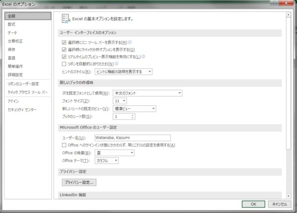 「ファイル」タブ→「オプション」をクリックしてください。