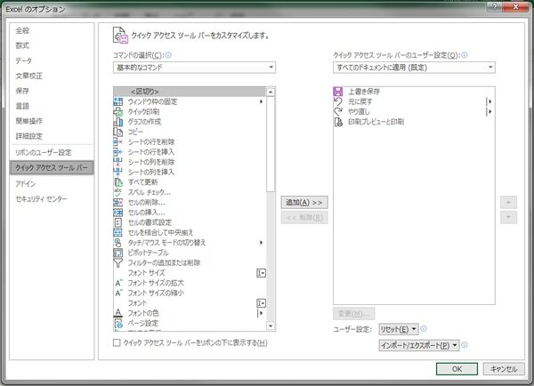 カスタマイズ クイックアクセスツールバー