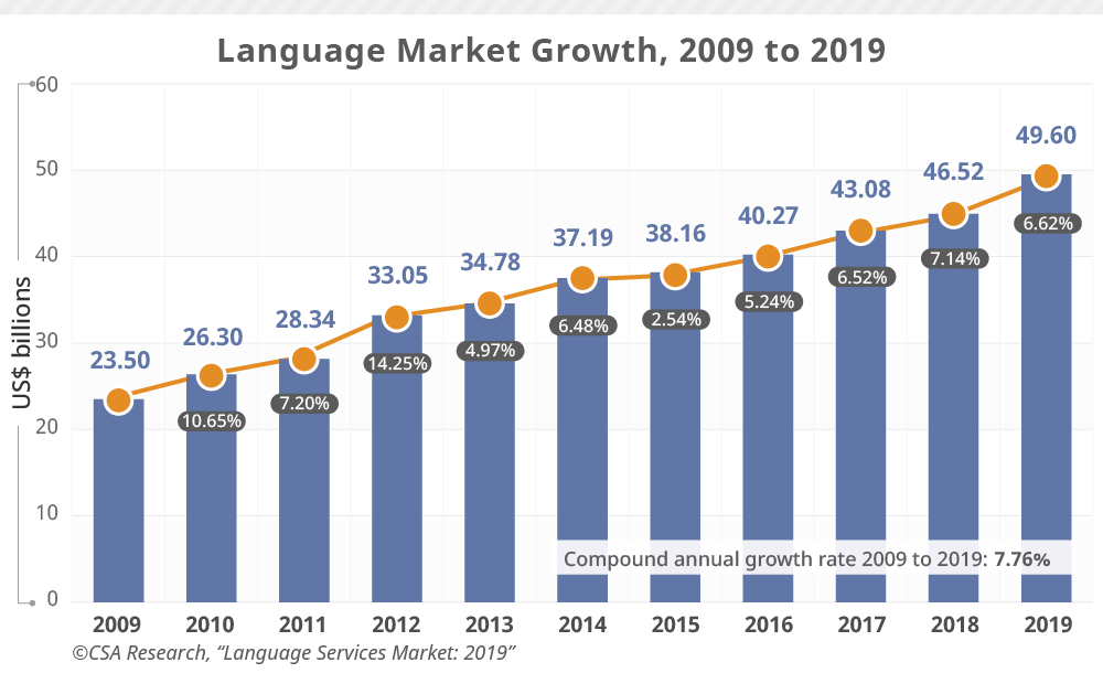 2009年から2019年の間の言語サービス市場の成長