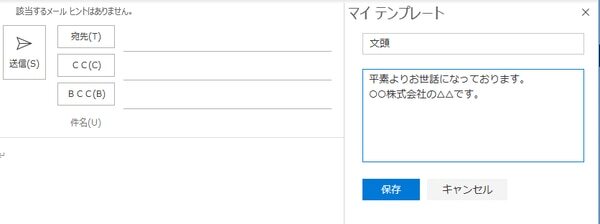 以下は、Outlookのテンプレート作成画面です。