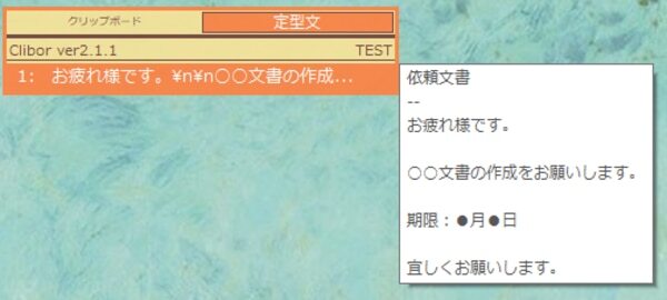 クリップボードから過去にコピーしたテキストをペーストすることができ、また定型文を登録しておけば、「Shift」や「Ctrl」などのキーをダブルクリックして簡単に登録したテキストを呼び出すことができます。