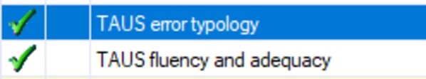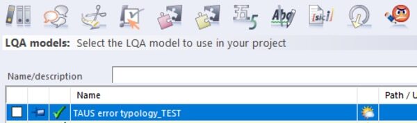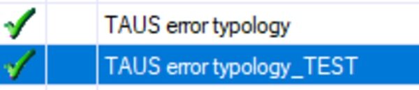 既存のLQAモデルの一覧が表示されるので、そこから使いたいモデルを選びます。私は、TAUS error typology を使うことにしました。
