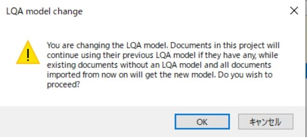OKを押すと、LQAモデルがプロジェクトの全てのドキュメントに対して設定されます。