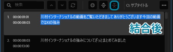 - 「キャプションを結合」:結合したいキャプションを選択し、ボタンをクリックすると結合されます。