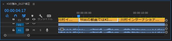 キャプションのタイミングは「タイムライン」パネルでも調整できます。