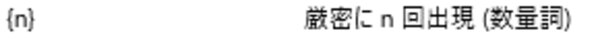次に文字数を表す正規表現を選びます。「厳密にn回出現」とある特殊文字を選びます。