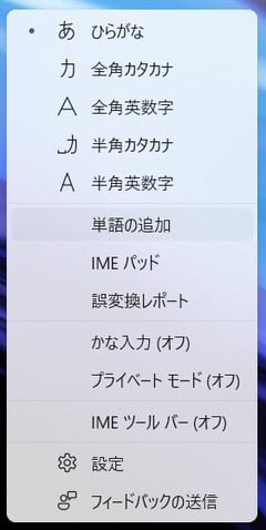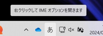 1)画面下のタスクバーにある「あ」などの下にカーソルを合わせ右クリックします。