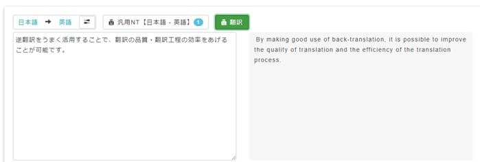 早速、機械翻訳の逆翻訳を行ってみましょう。今回は弊社が提供する機械翻訳エンジン「みんなの自動翻訳@KI(商用版)」に付帯している逆翻訳機能を使用していきます。 まずは日本語の文章を英語に機械翻訳で翻訳します。