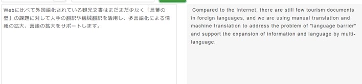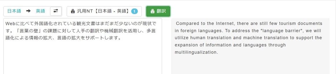 今回の逆翻訳機能で使用した国産の機械翻訳サービス、「みんなの自動翻訳@KI(商用版)」は、国立研究開発法人情報通信研究機構(NICT)によって開発された「みんなの自動翻訳@TexTra®」のセキュリティ性などを高め、ビジネスでも利用できる仕様にしたサービスです。