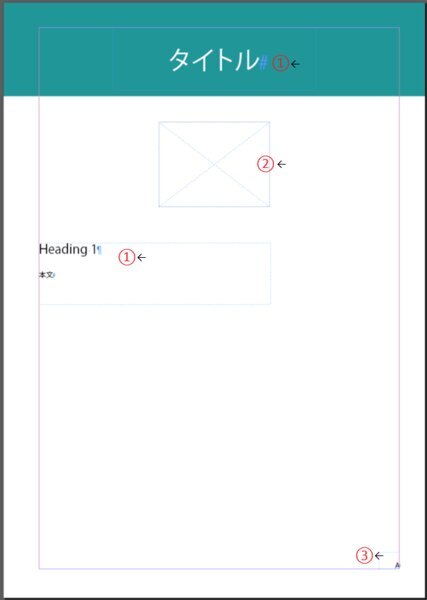 ① テキストフレームを作っておくと、テキストの配置を統一できます。