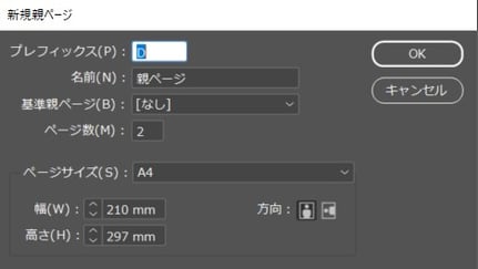親ページの「ページ」パネルは「ウィンドウ(W)」 > 「ページ(F12)」で出せます。一つのファイルの中で、親ページをいくつも作ることができます。「表紙」、「本文」と「裏表紙」が親ページにされているパターンをよく見ます。