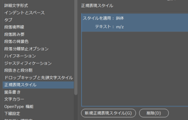 段落スタイルの正規表現スタイル