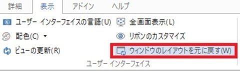 筆者が業務中、あってよかったといつも感じているのが、「表示」メニューにある「ウィンドウのレイアウトを元に戻す」機能です。