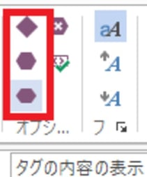 紫のアイコンが3つ並んでいますが、下に行くほどタグに表示される情報が多くなります。