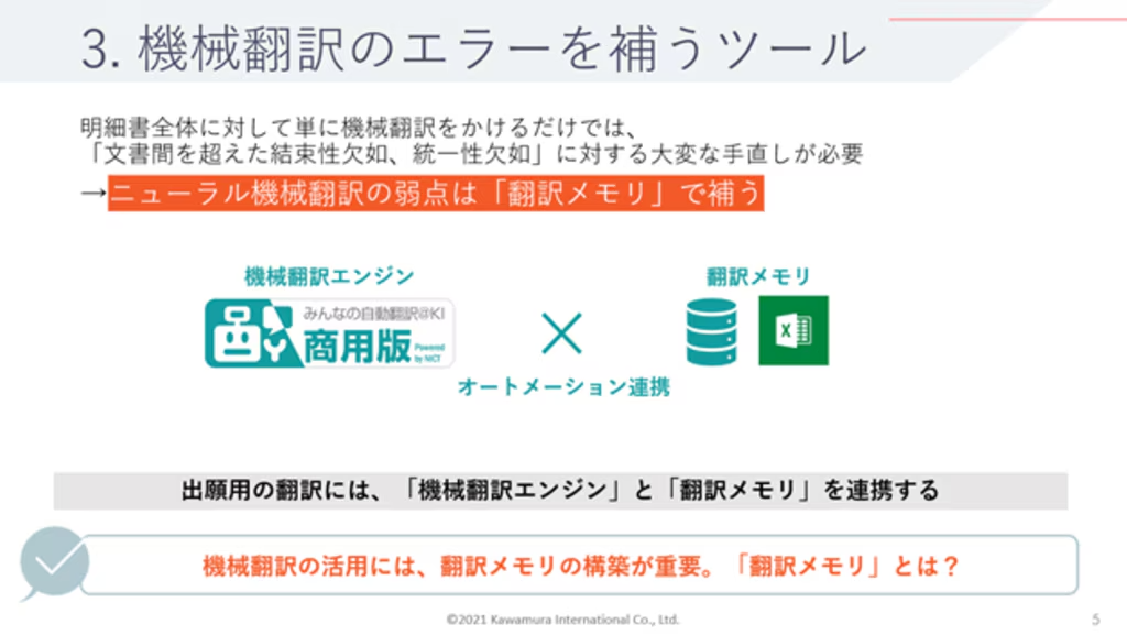 特許分野の翻訳において、機械翻訳の導入・活用が注目を集めています。しかし、特許文書特有の専門用語や長文を機械翻訳にかけ、訳文の品質基準を満たすにはちょっとした工夫が必要です。
