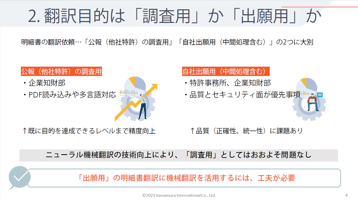 2.翻訳目的は「調査用」か「出願用」か
