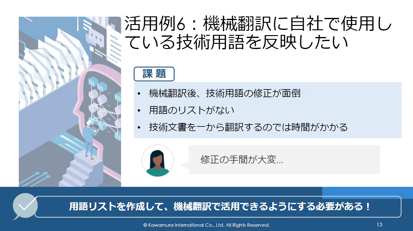活用例6: 機械翻訳に自社で使用している技術用語を反映したい