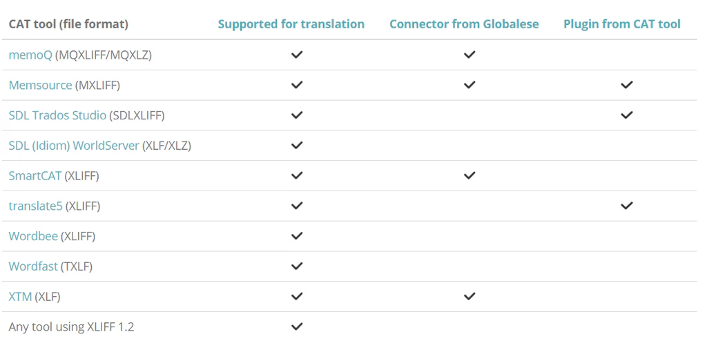対応している翻訳支援ツールの一覧については下記をご参照ください。