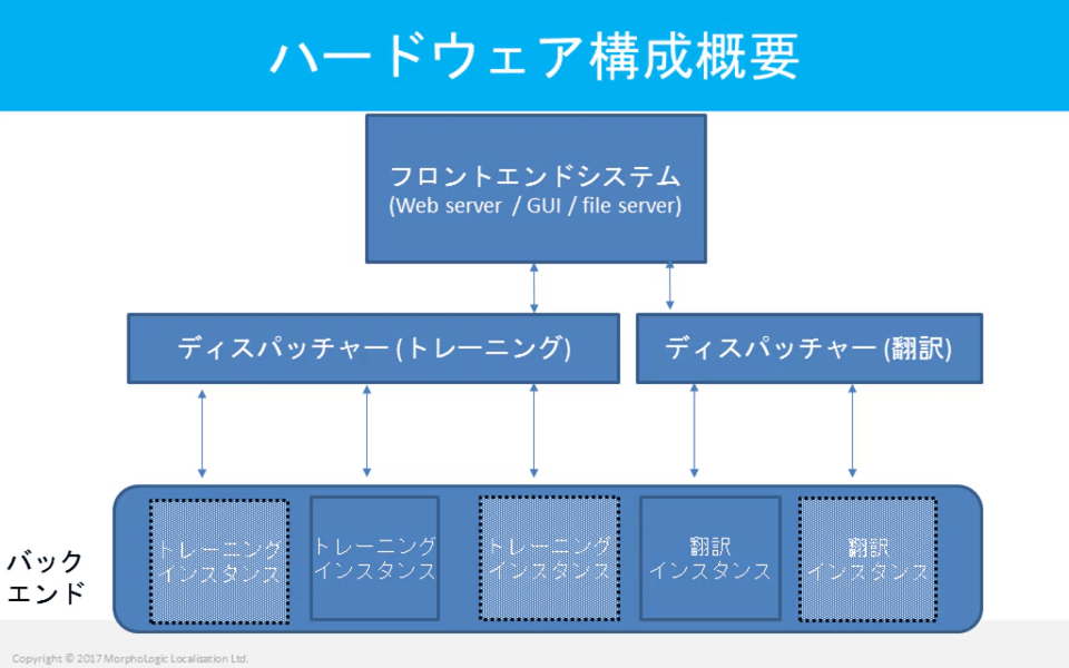 トレーニングおよび翻訳ジョブをバックエンド機のGPUに割り当てる機能